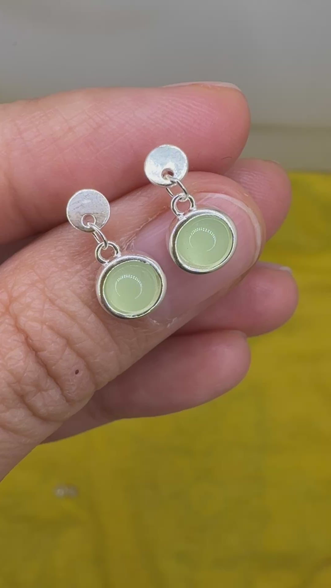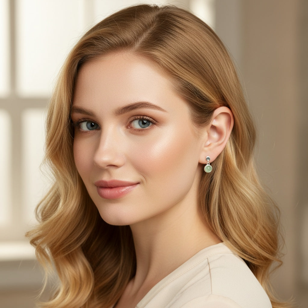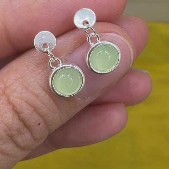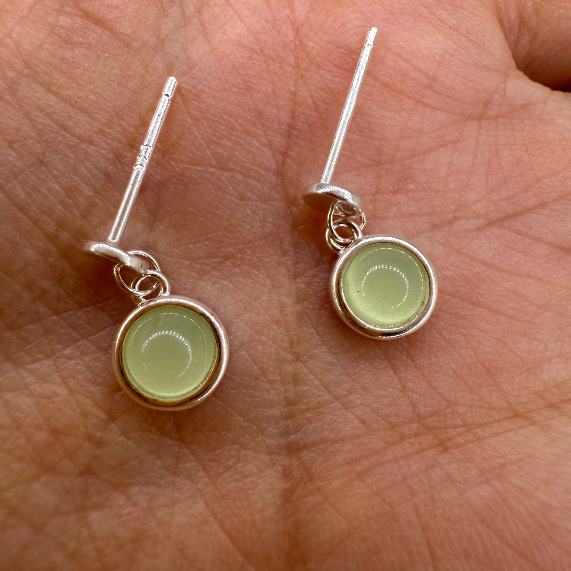 925 Sterling Silver Earrings Round 6mm Green Natural Cat Eye Gemstone Dainty Drop Women Jewelry Gift for Her, Sister