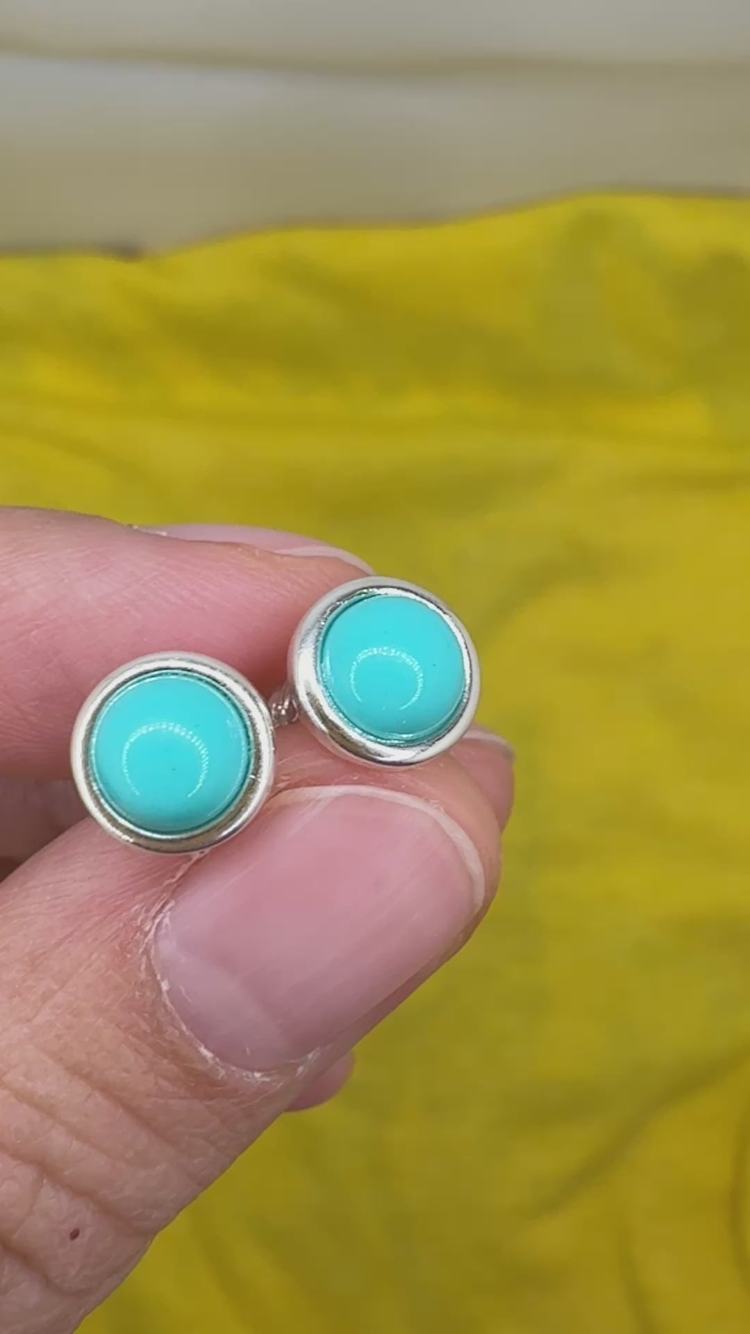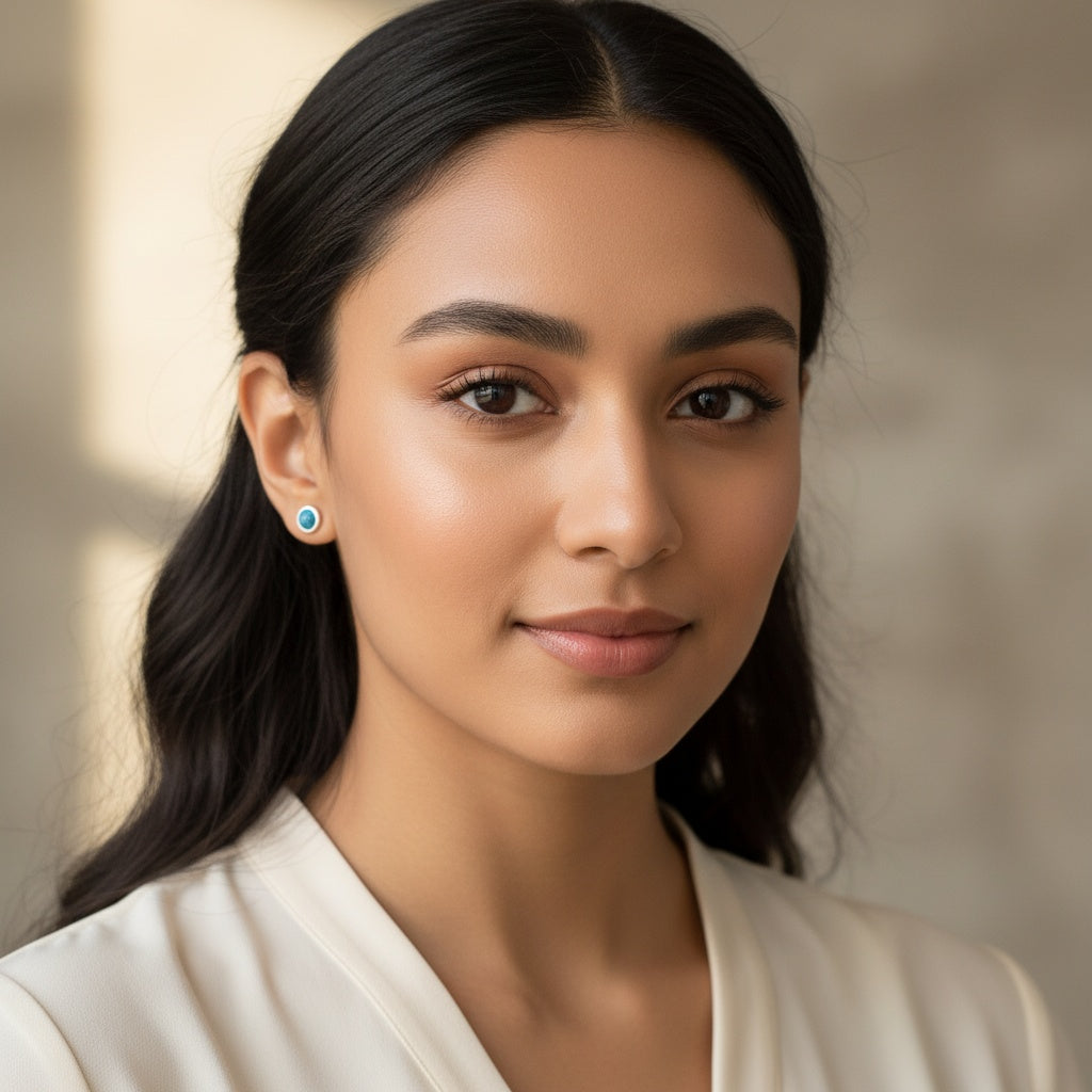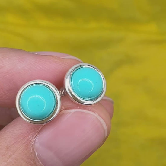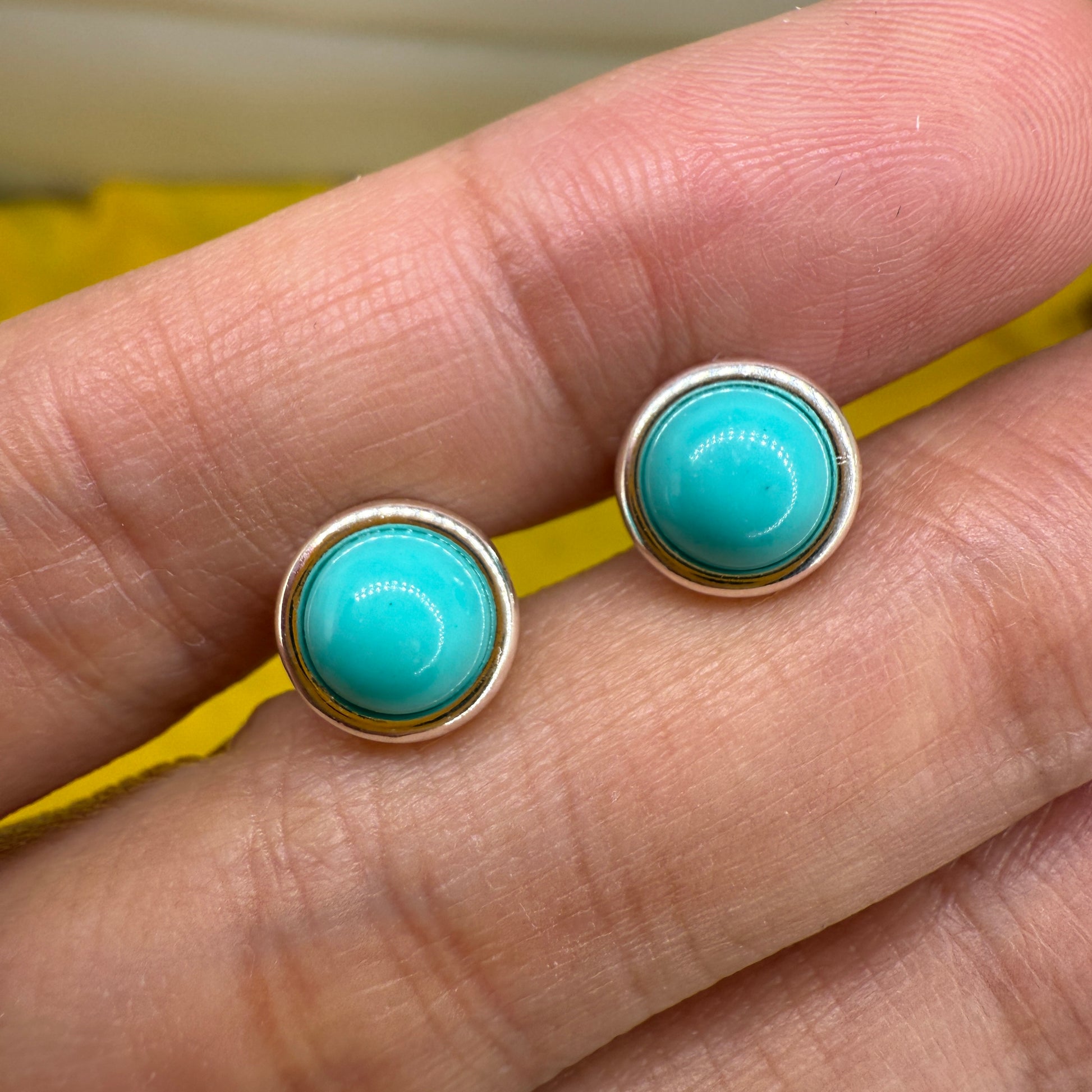 925 Sterling Silver Earrings Round 6mm Natural Blue Turquoise Gemstone Stud Dainty Jewelry Gift for Her, Sister, Christmas