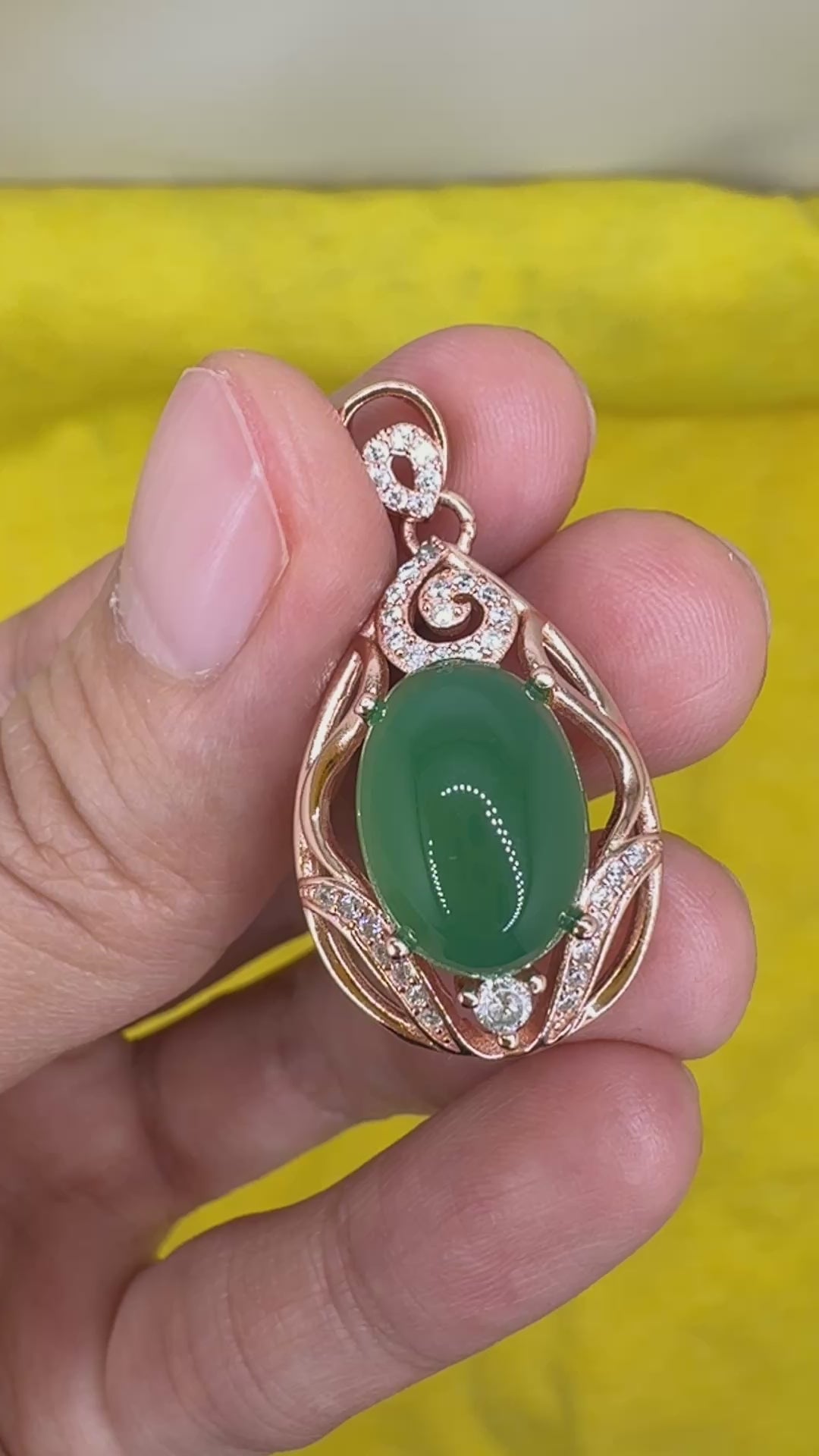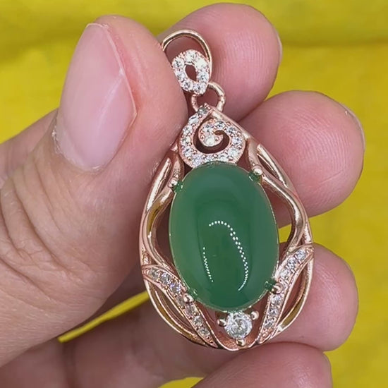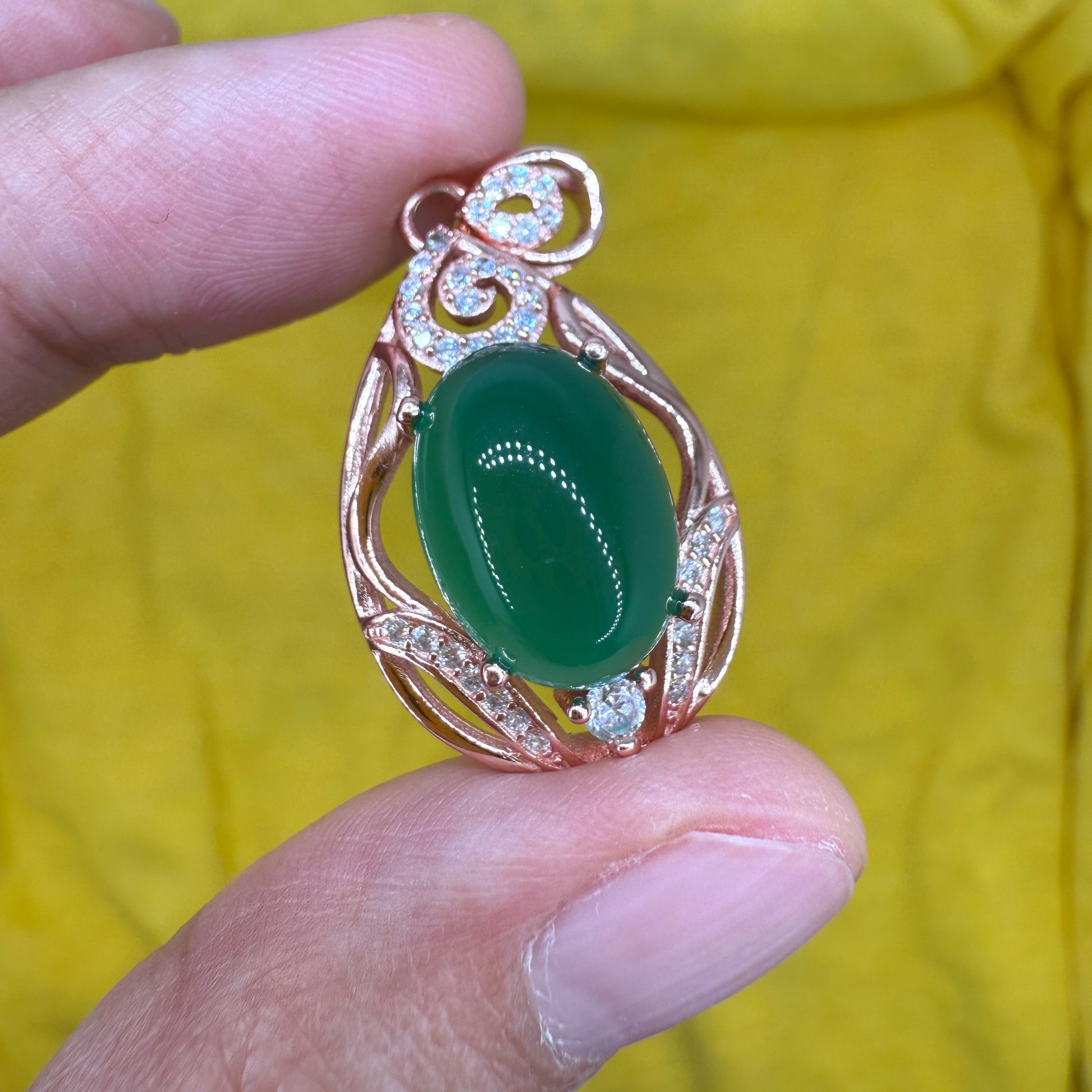 925 Sterling Silver Pendant 14x10mm Oval Green Natural Emerald Gemstone Zircon Women Bridal Jewelry Gift for Her, Sister
