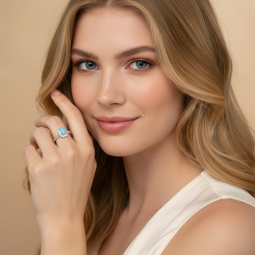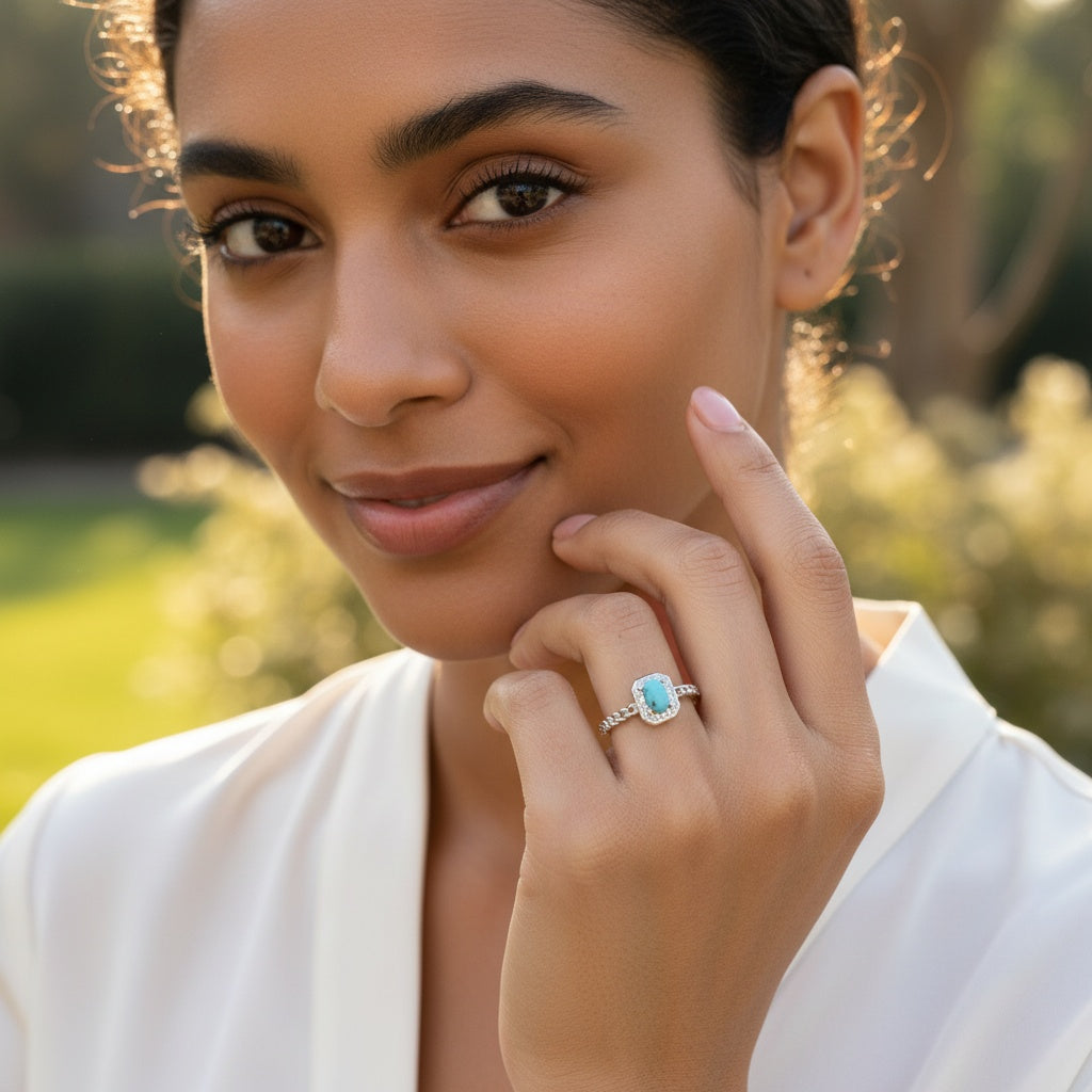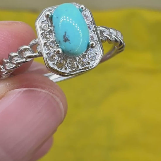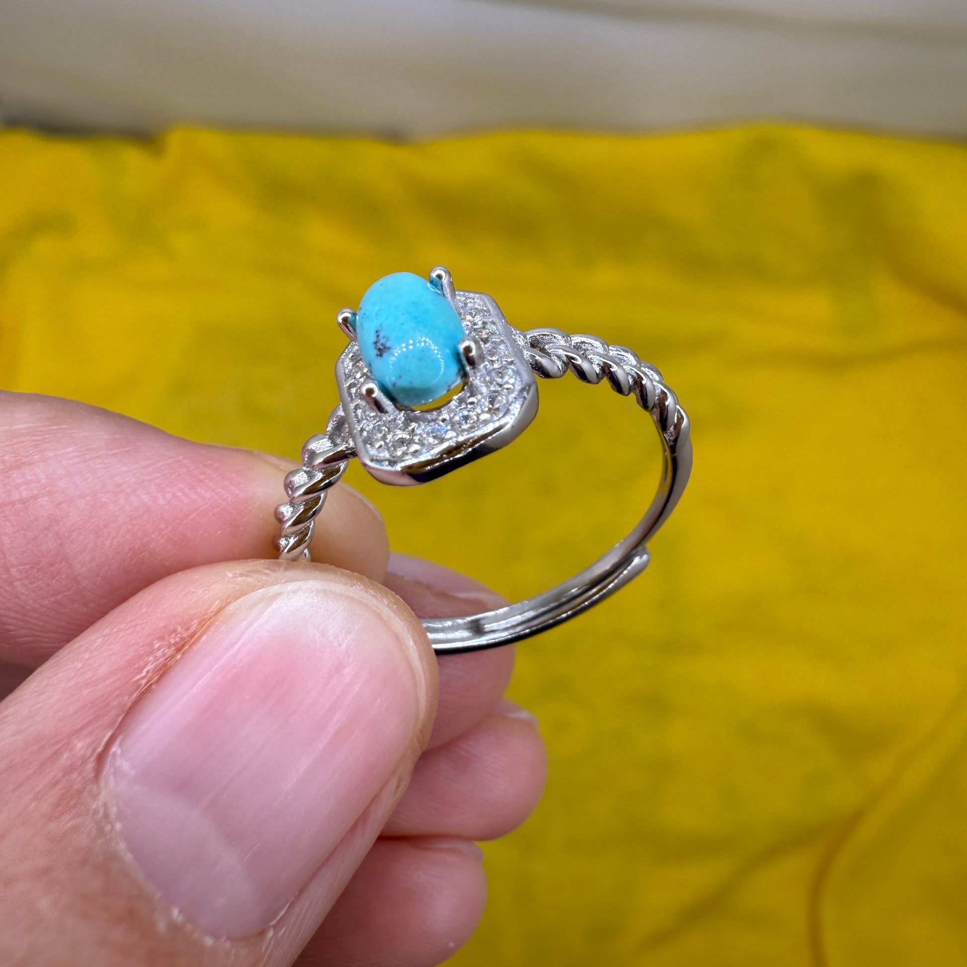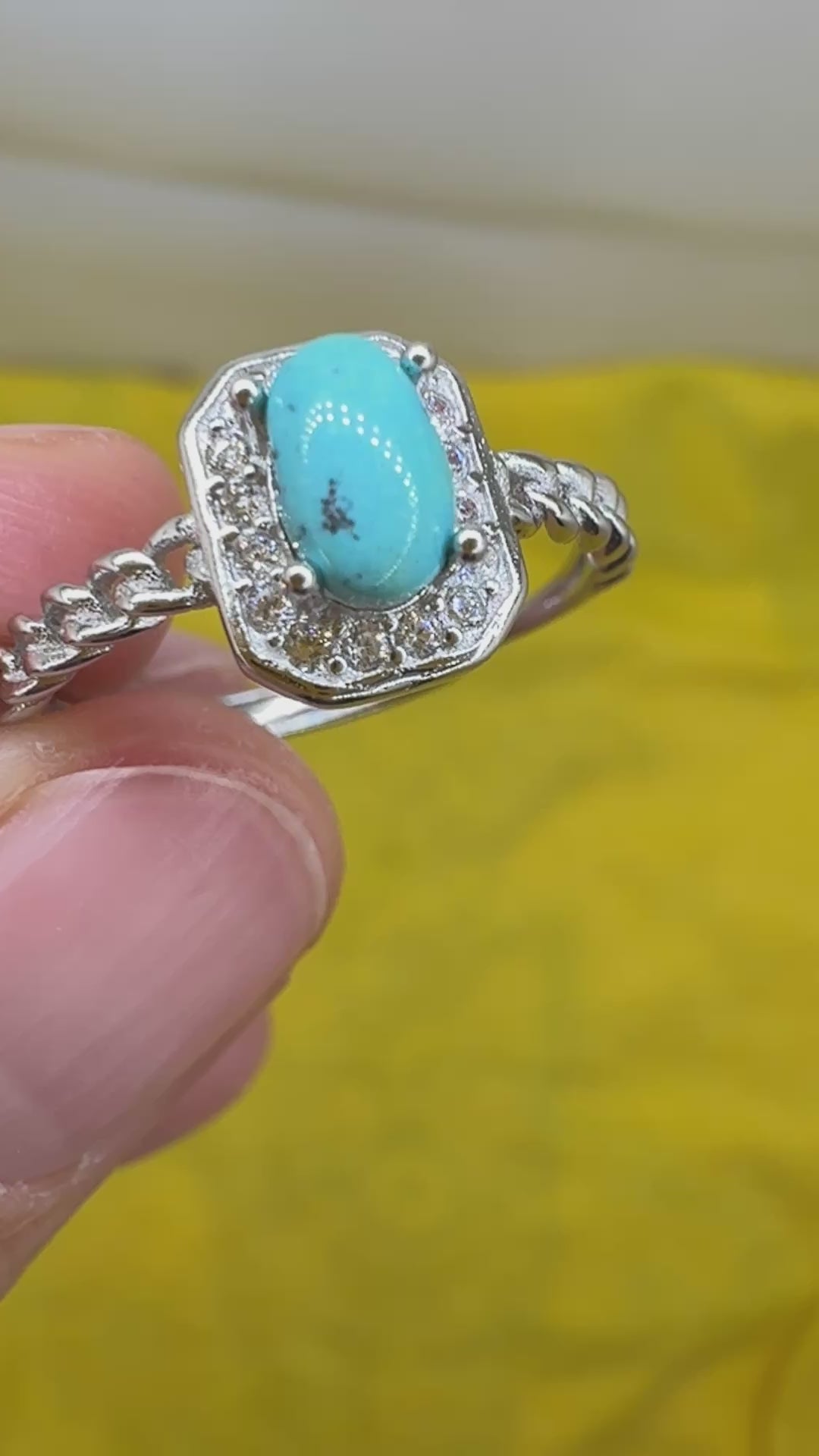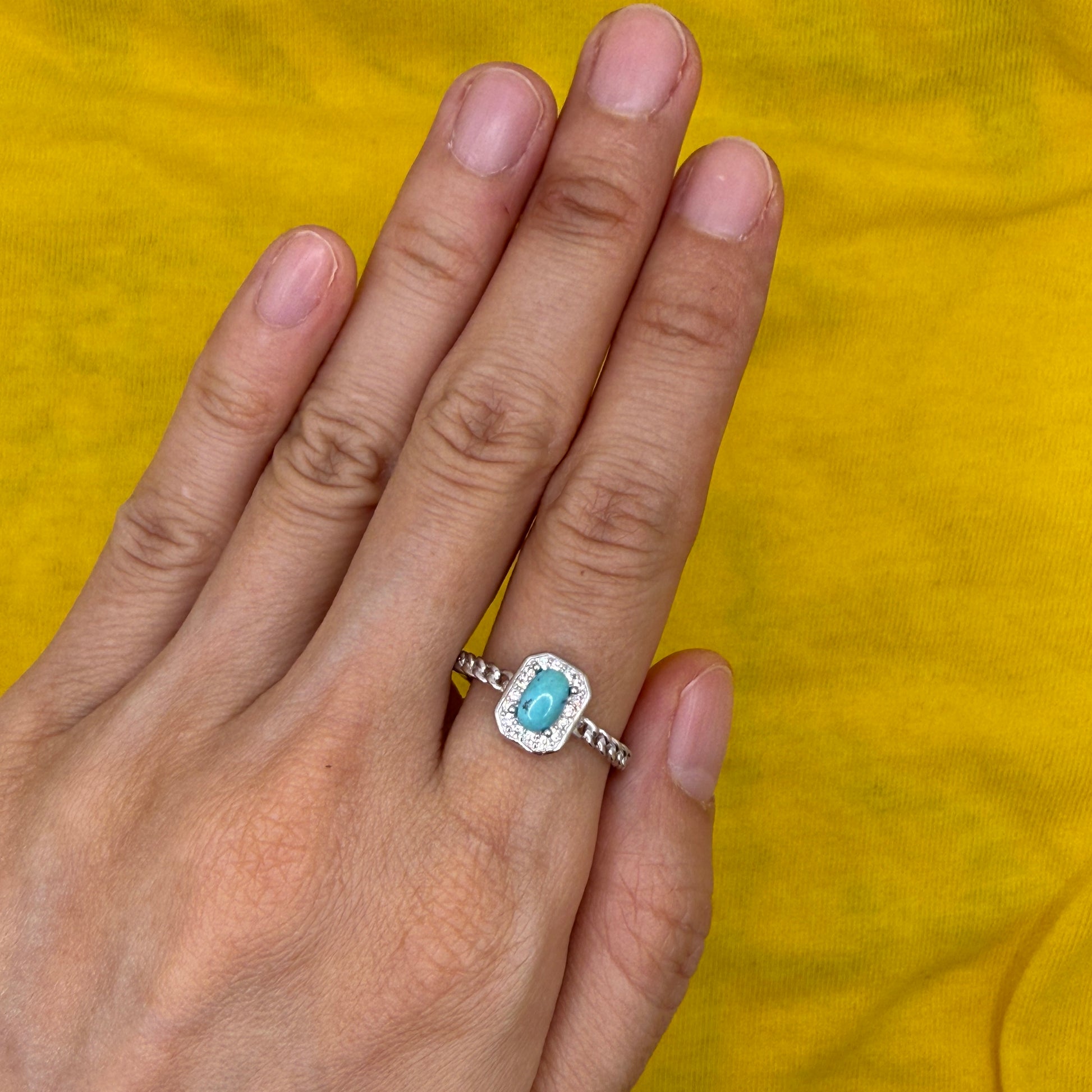 925 Sterling Silver Ring 5x3mm Blue Square Natural Turquoise Gemstone Zircon Women Bridal Jewelry Gift