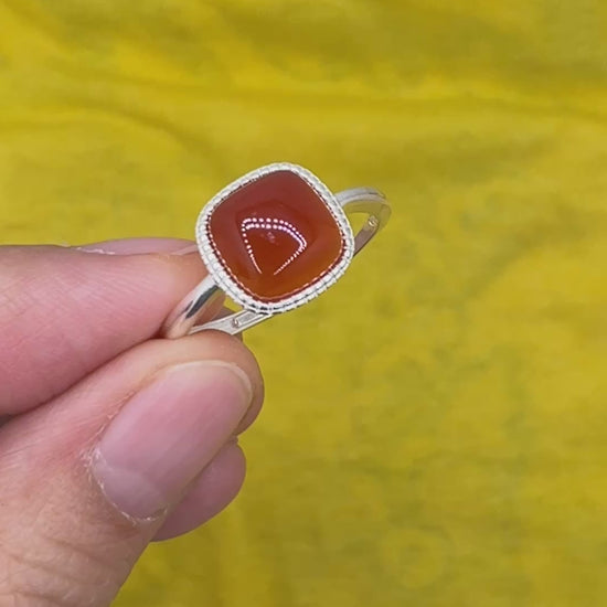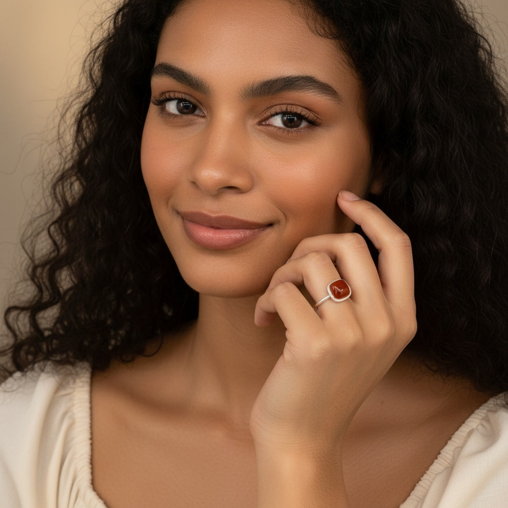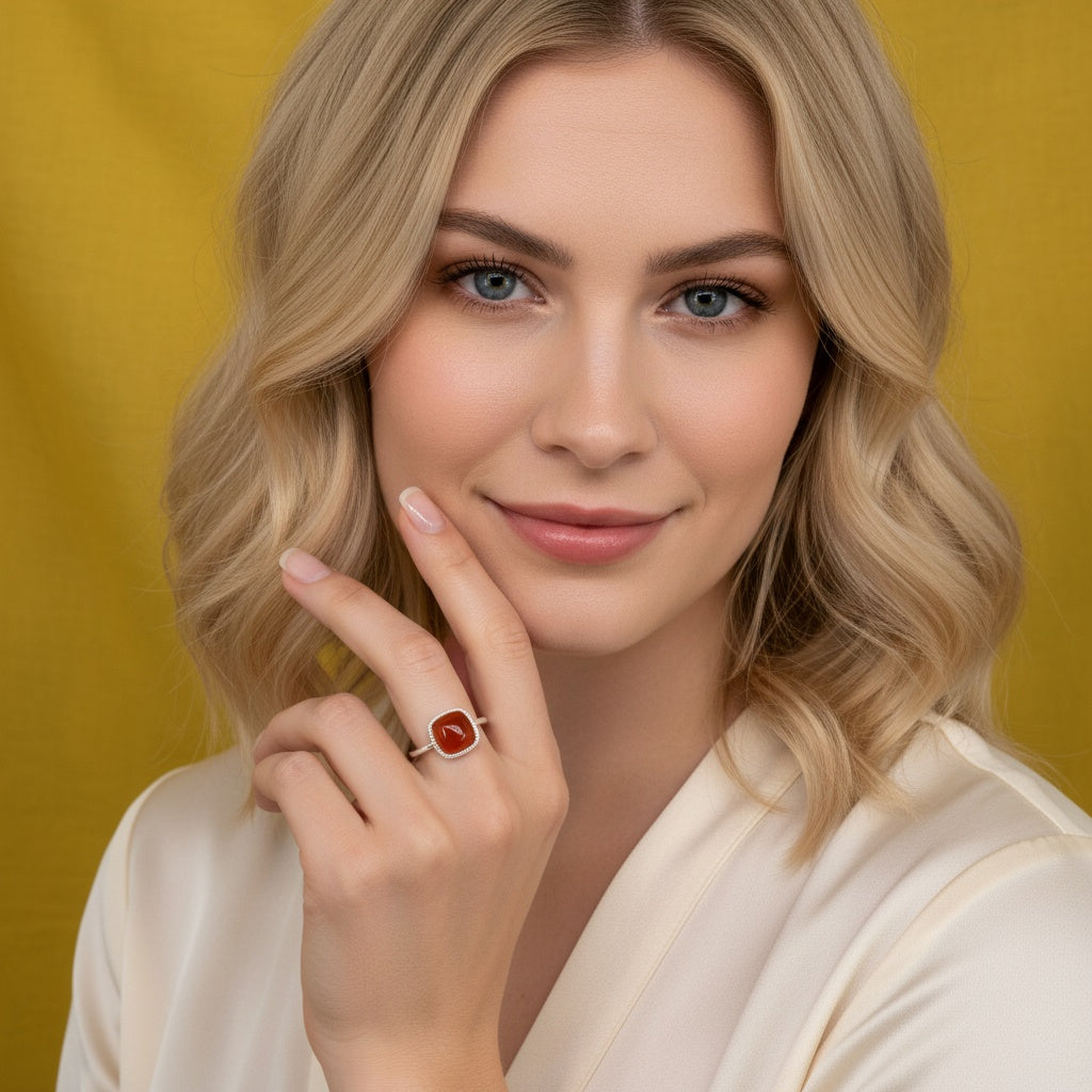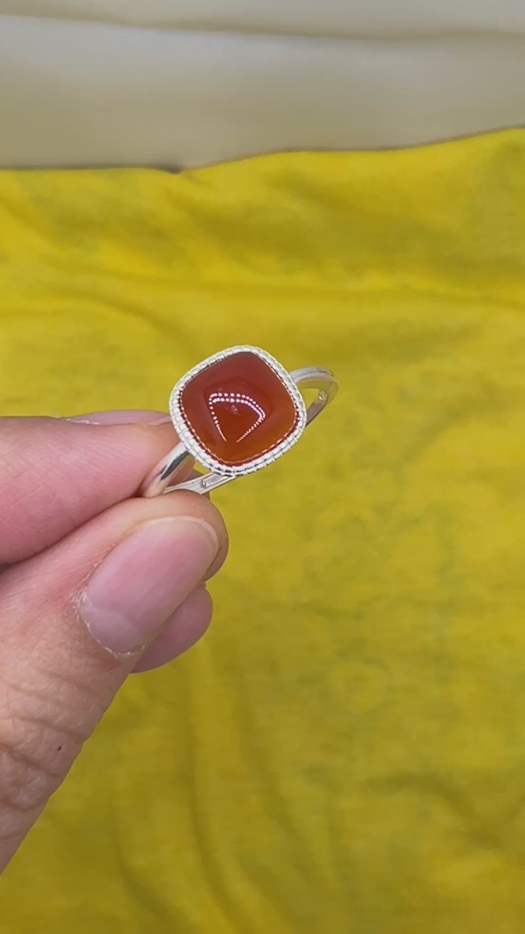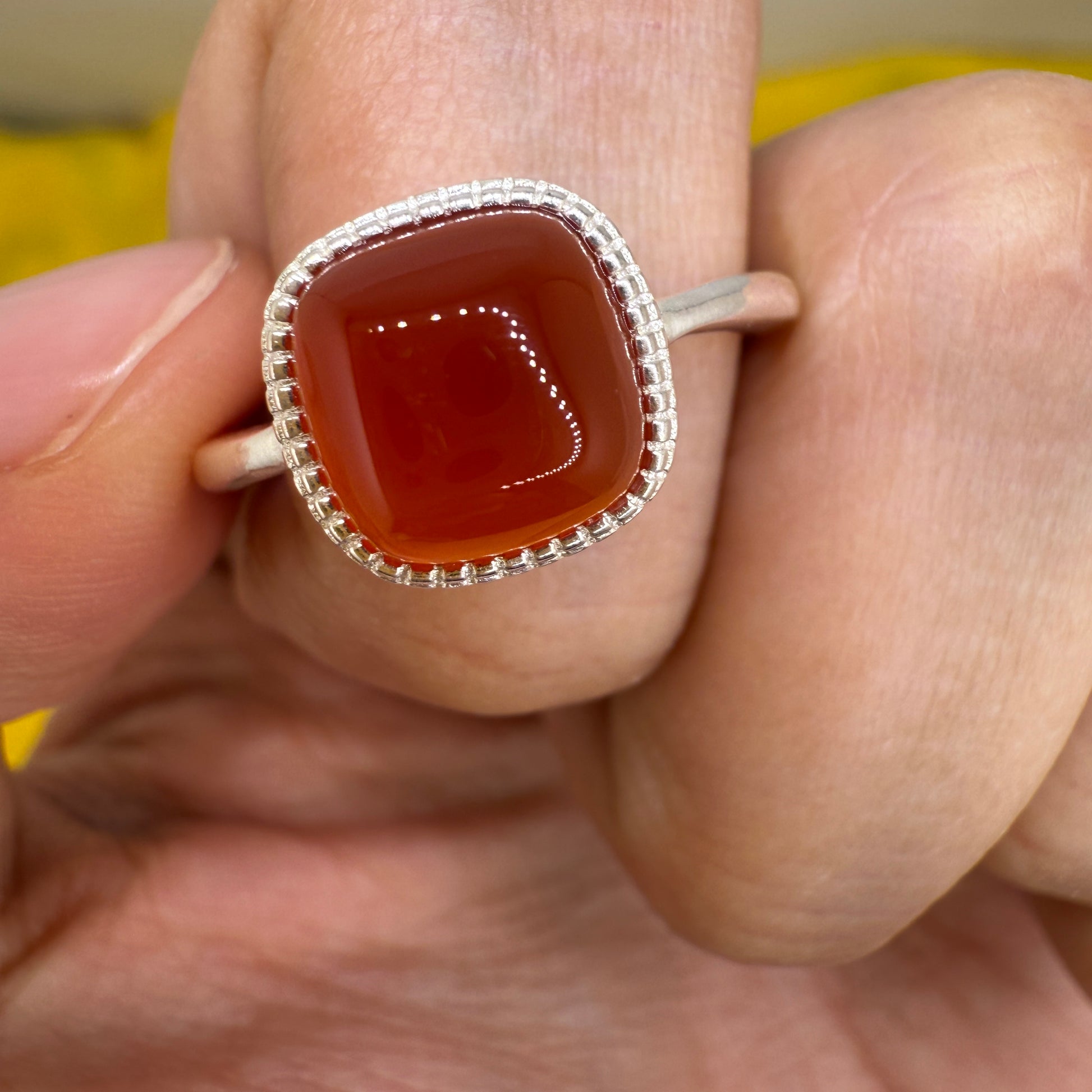 925 Sterling Silver Ring 8mm Square Red Natural Agate Gemstone Women Bridal Jewelry Cute Gift for Her