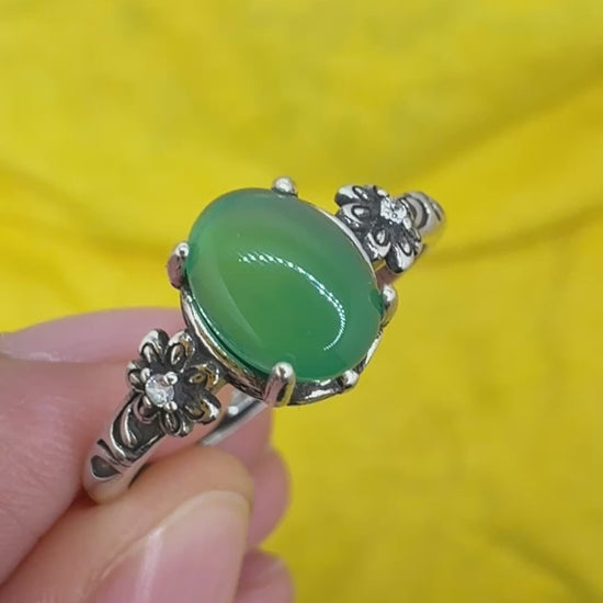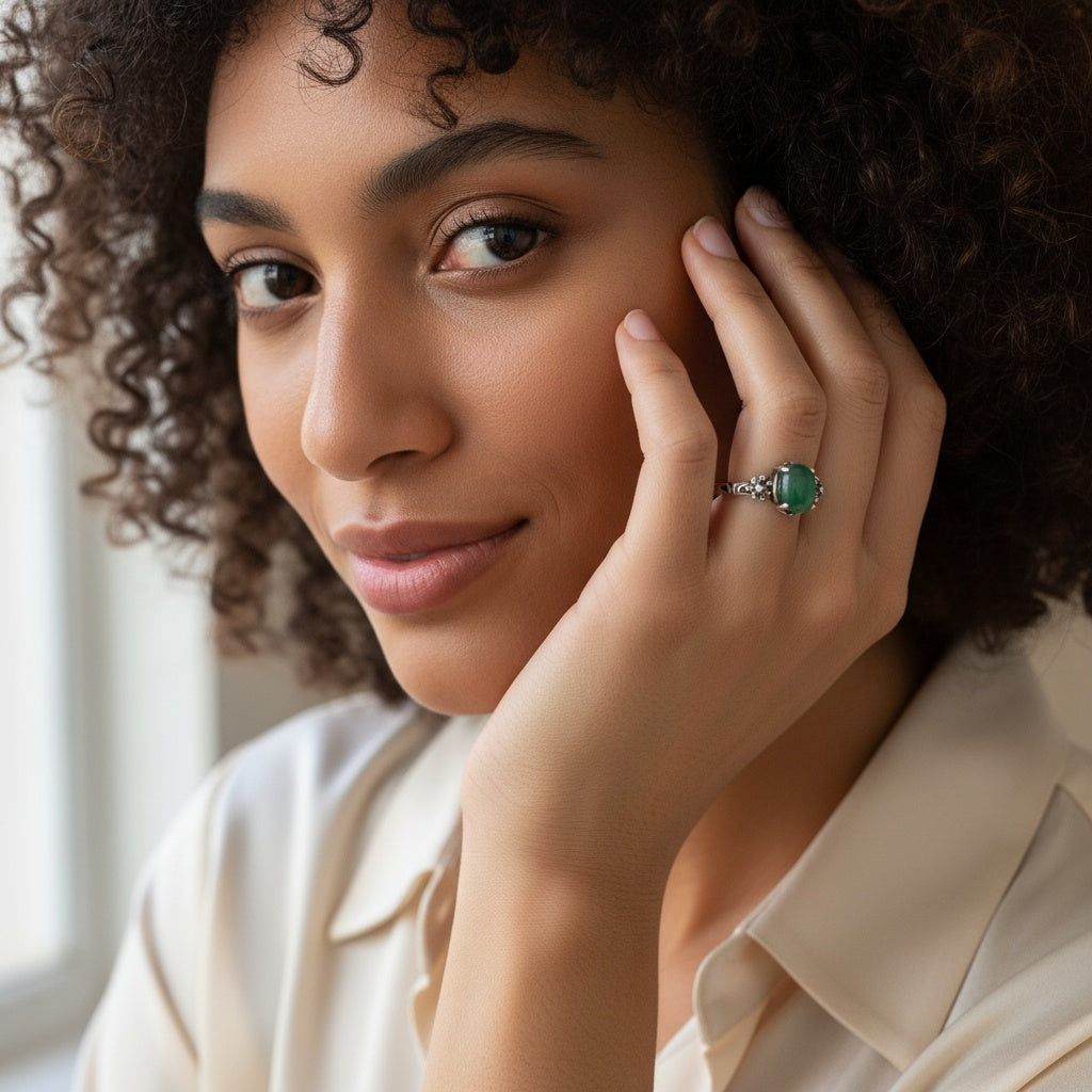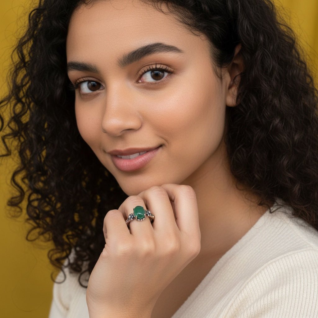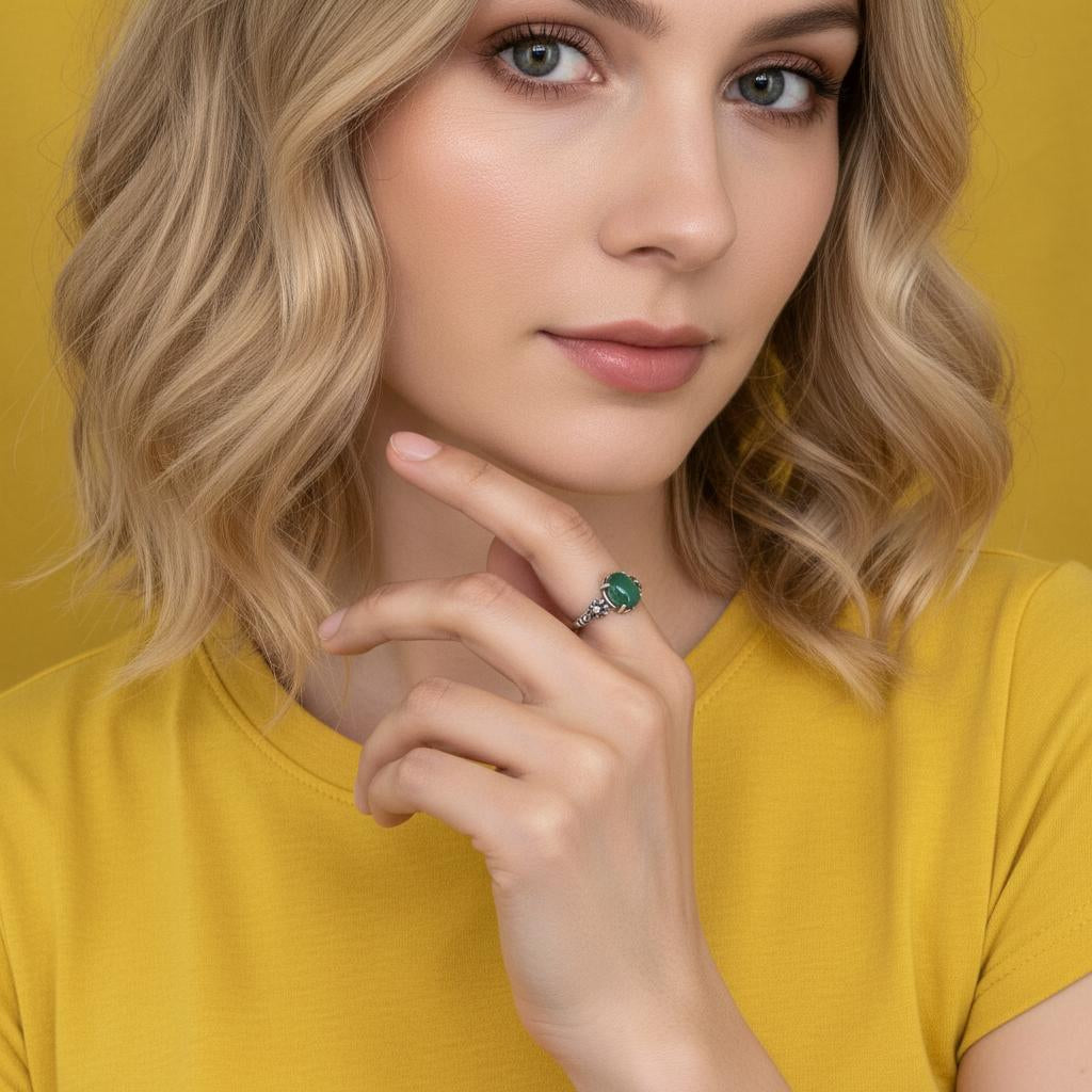 925 Sterling Silver Ring 8x6mm Natural Emerald Gemstone Women Jewelry Green Gift