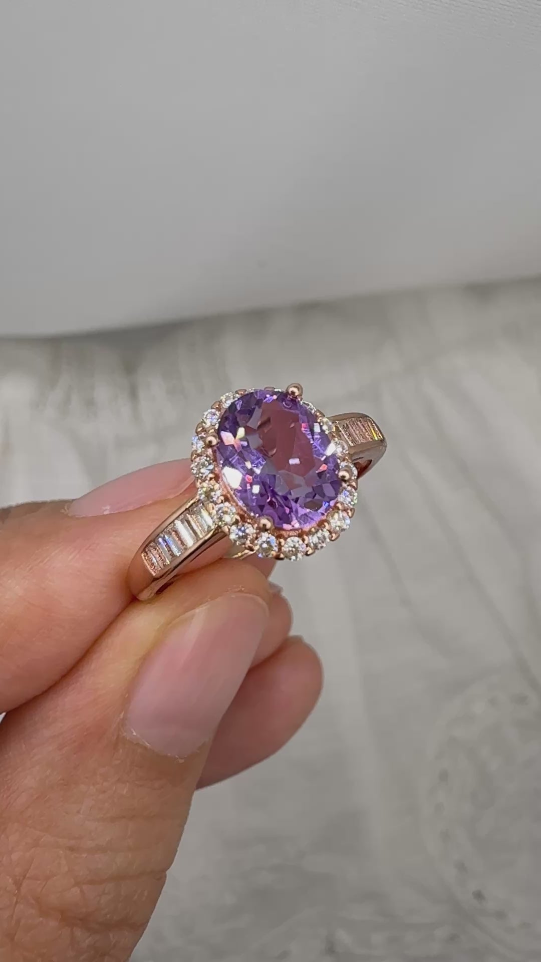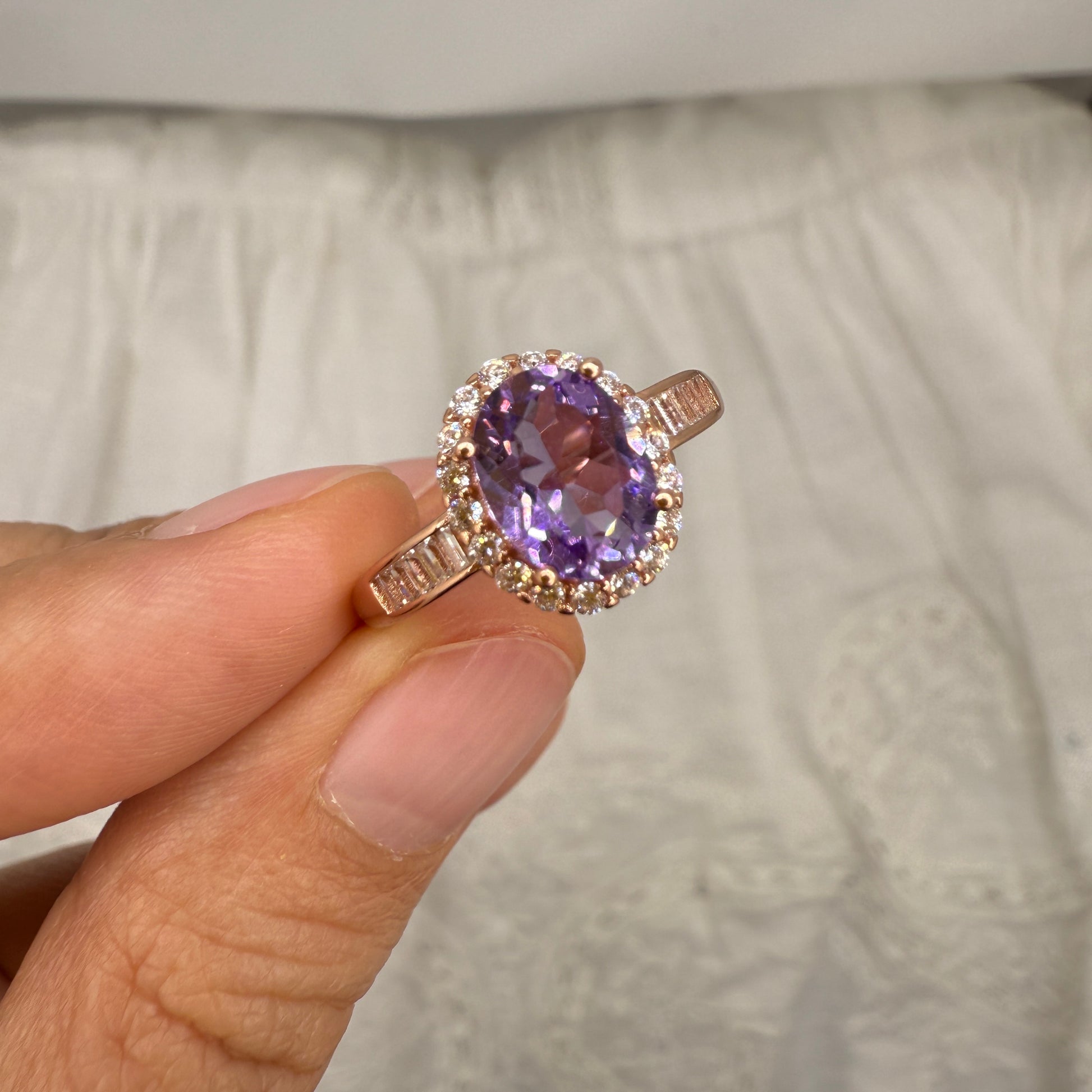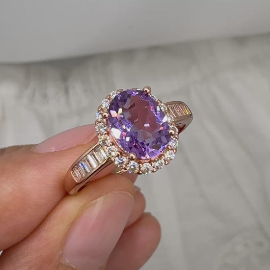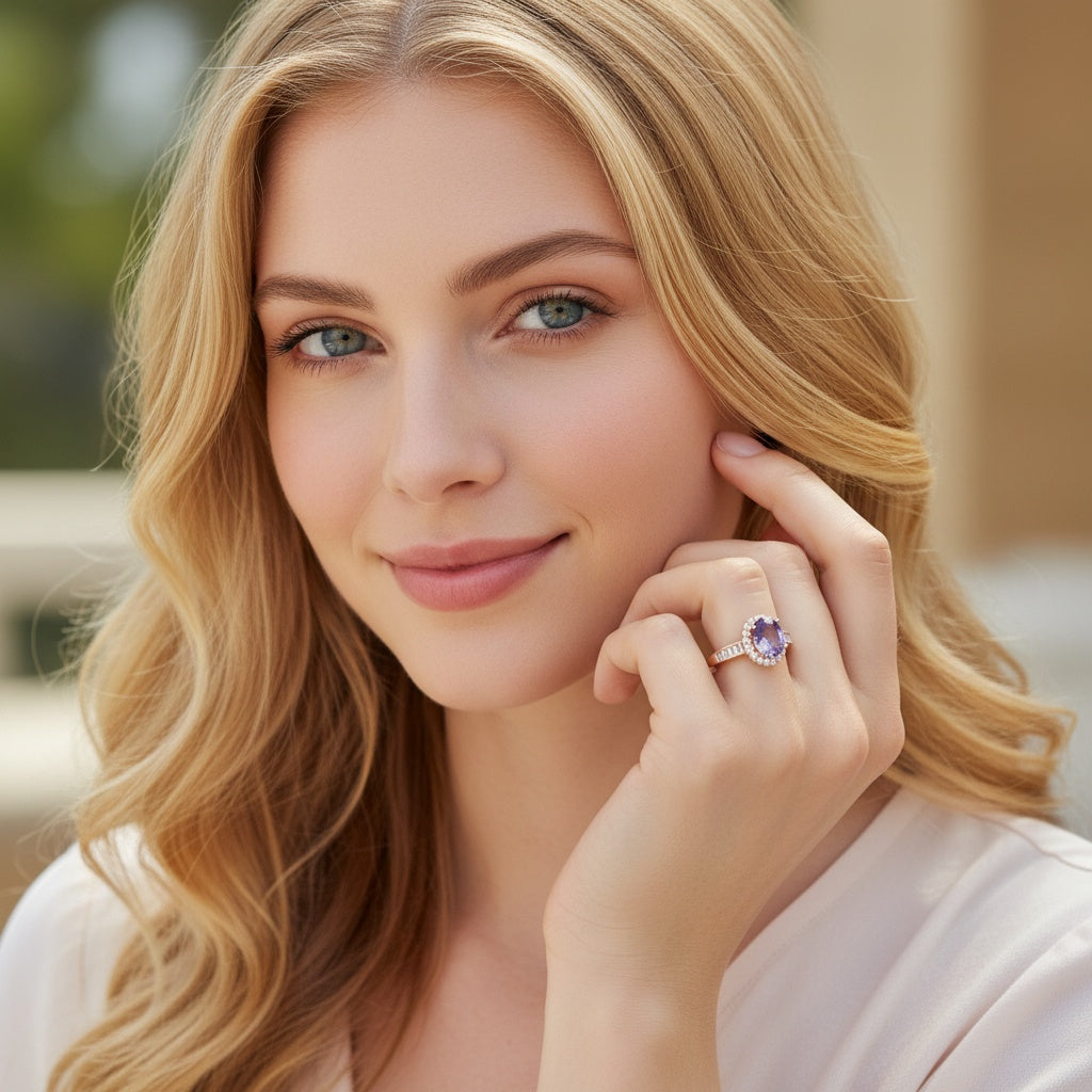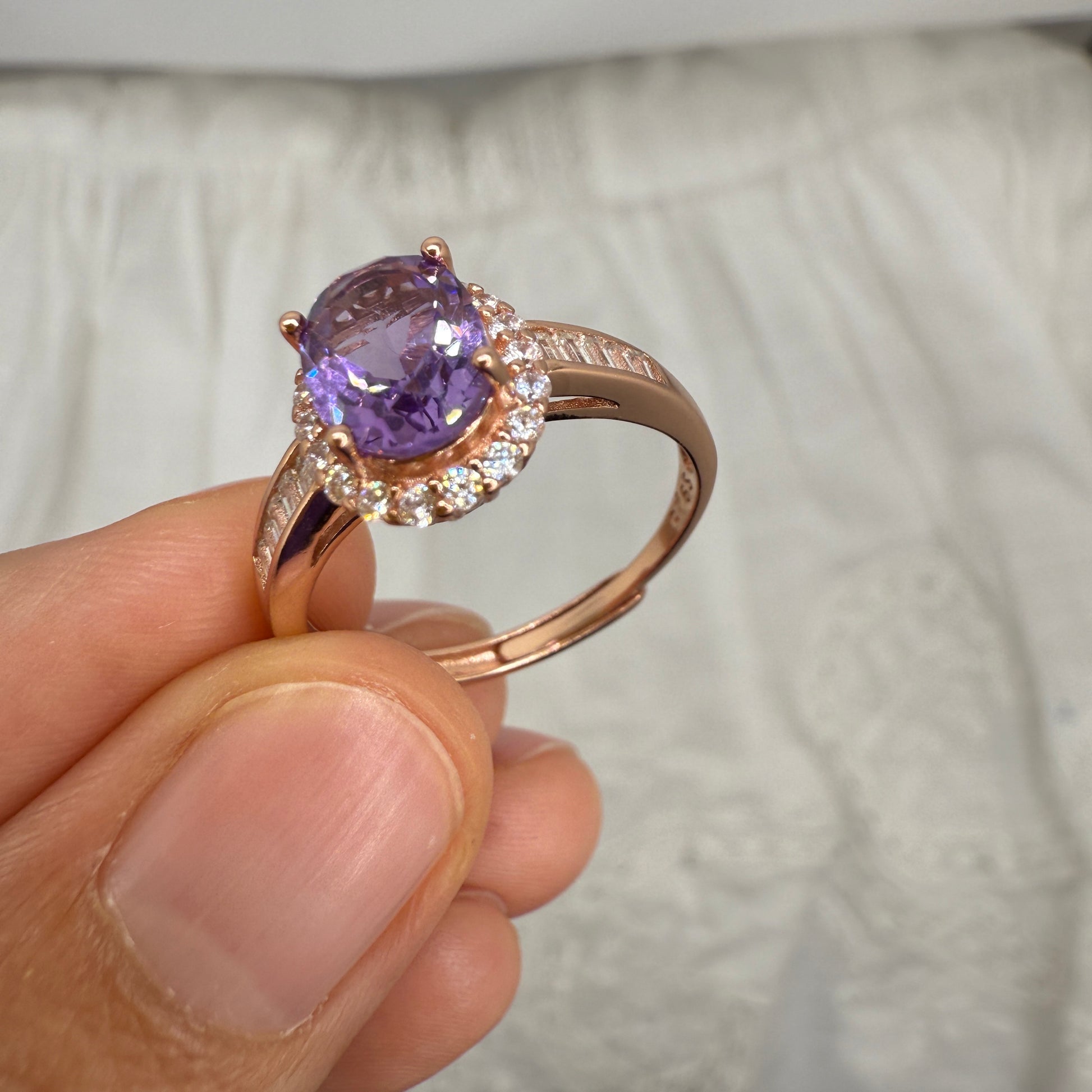 925 Sterling Silver Ring 9x6mm Purple Natural Amethyst Gemstone Zircon Women Bridal Jewelry Gift