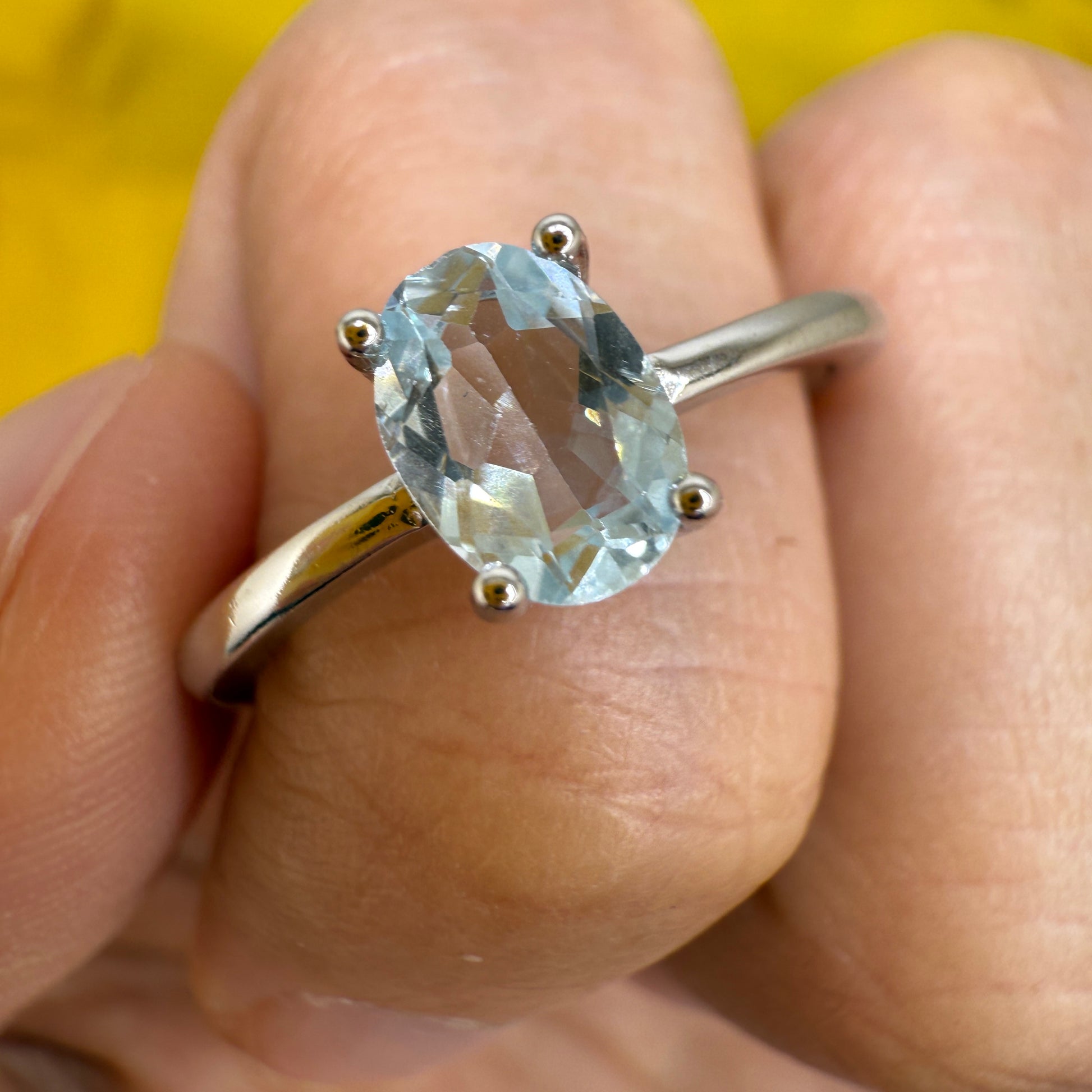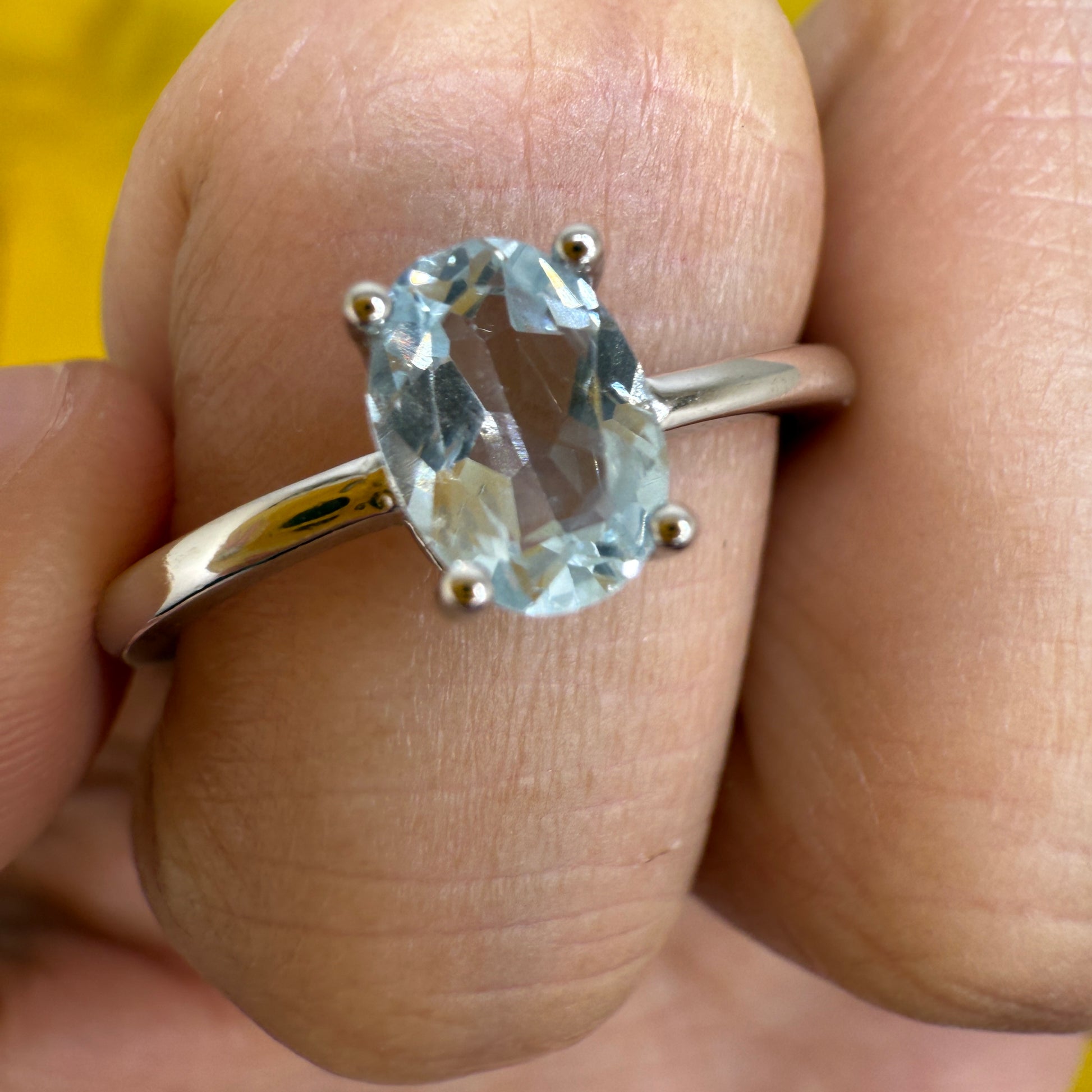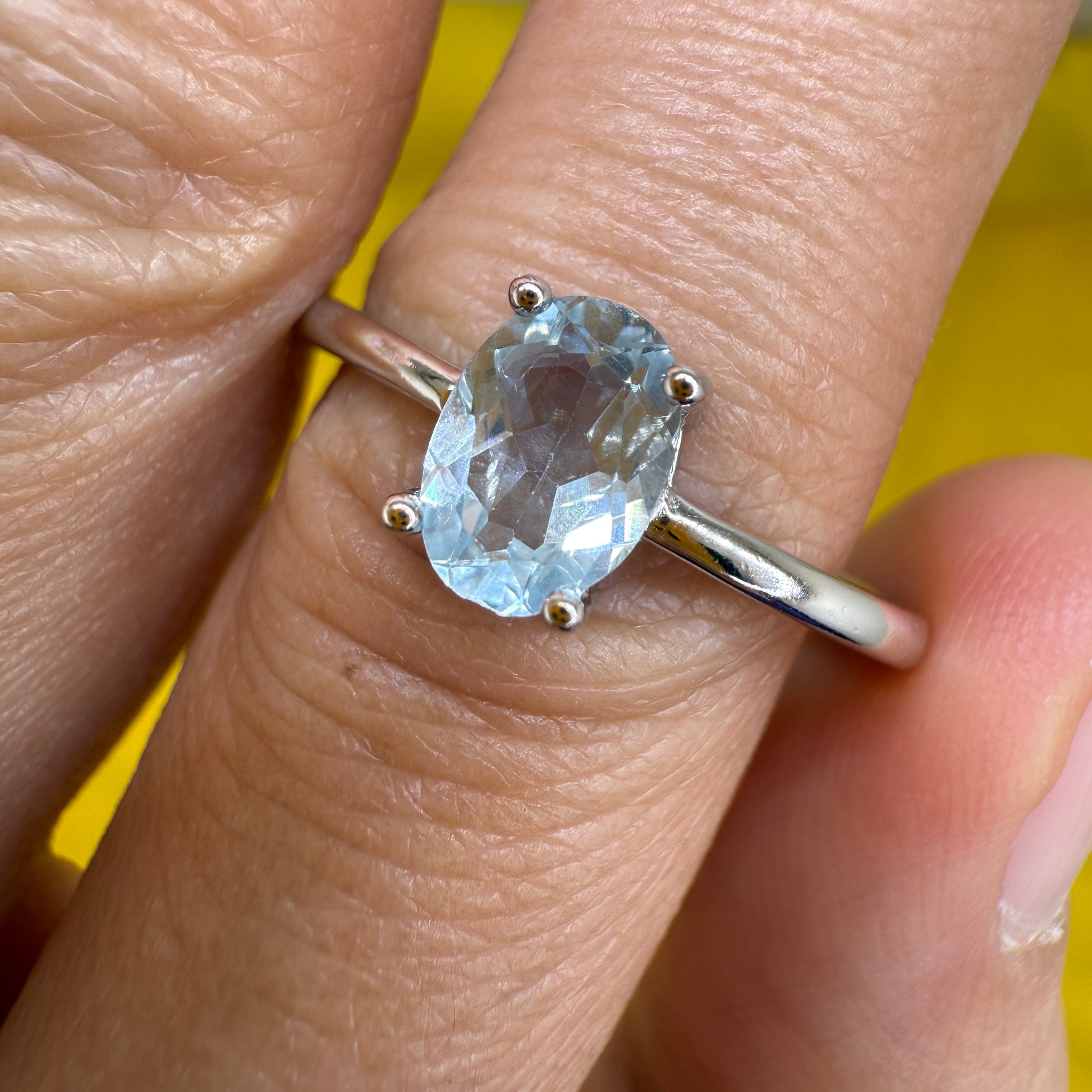 925 Sterling Silver Ring Oval 7x5mm Natural Blue Topaz Gemstone Fine Cut Women Bridal Jewelry Gift for Her, Sister