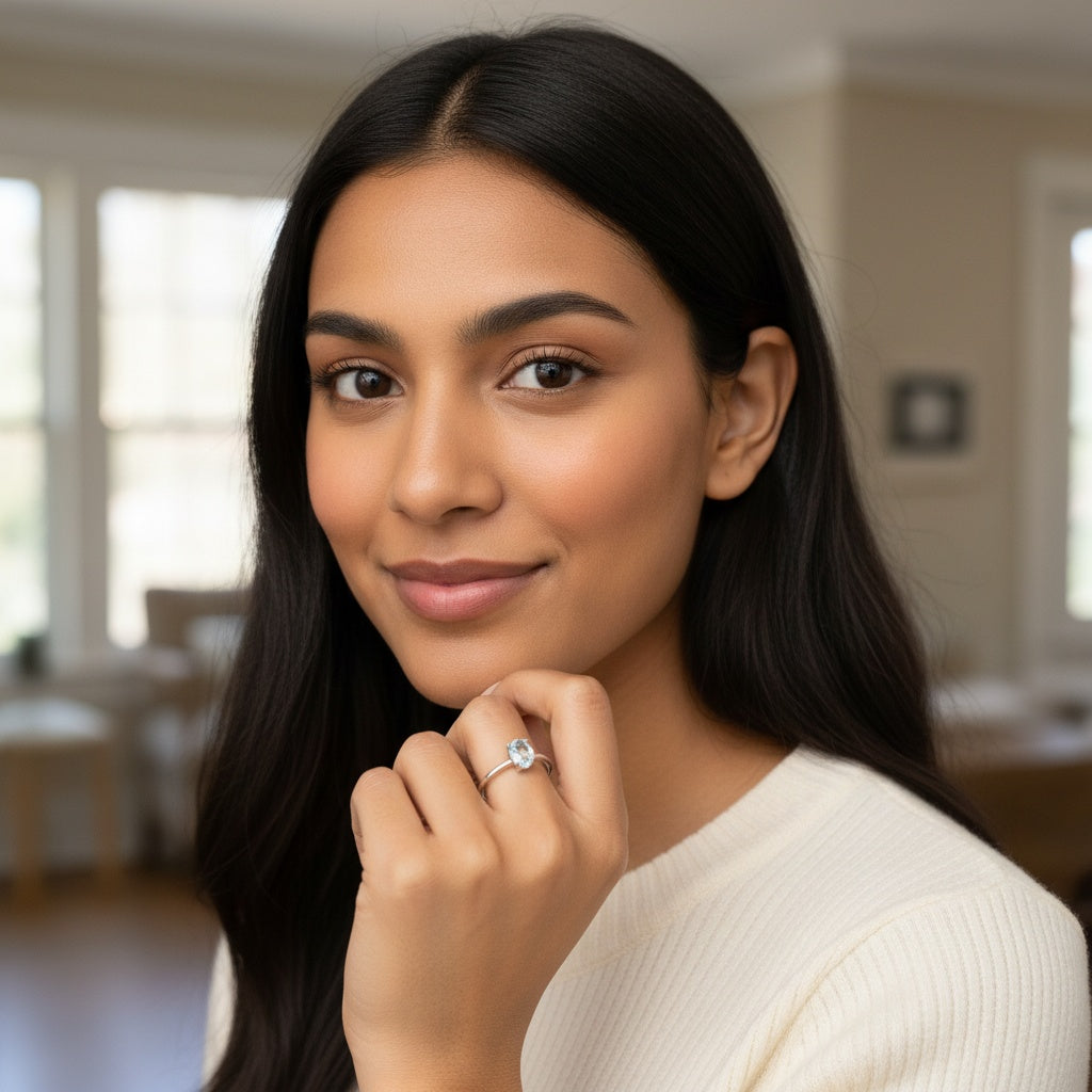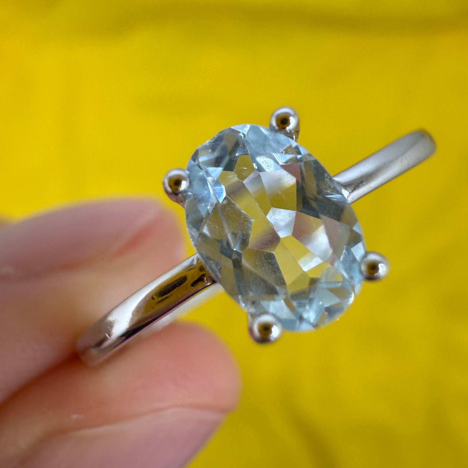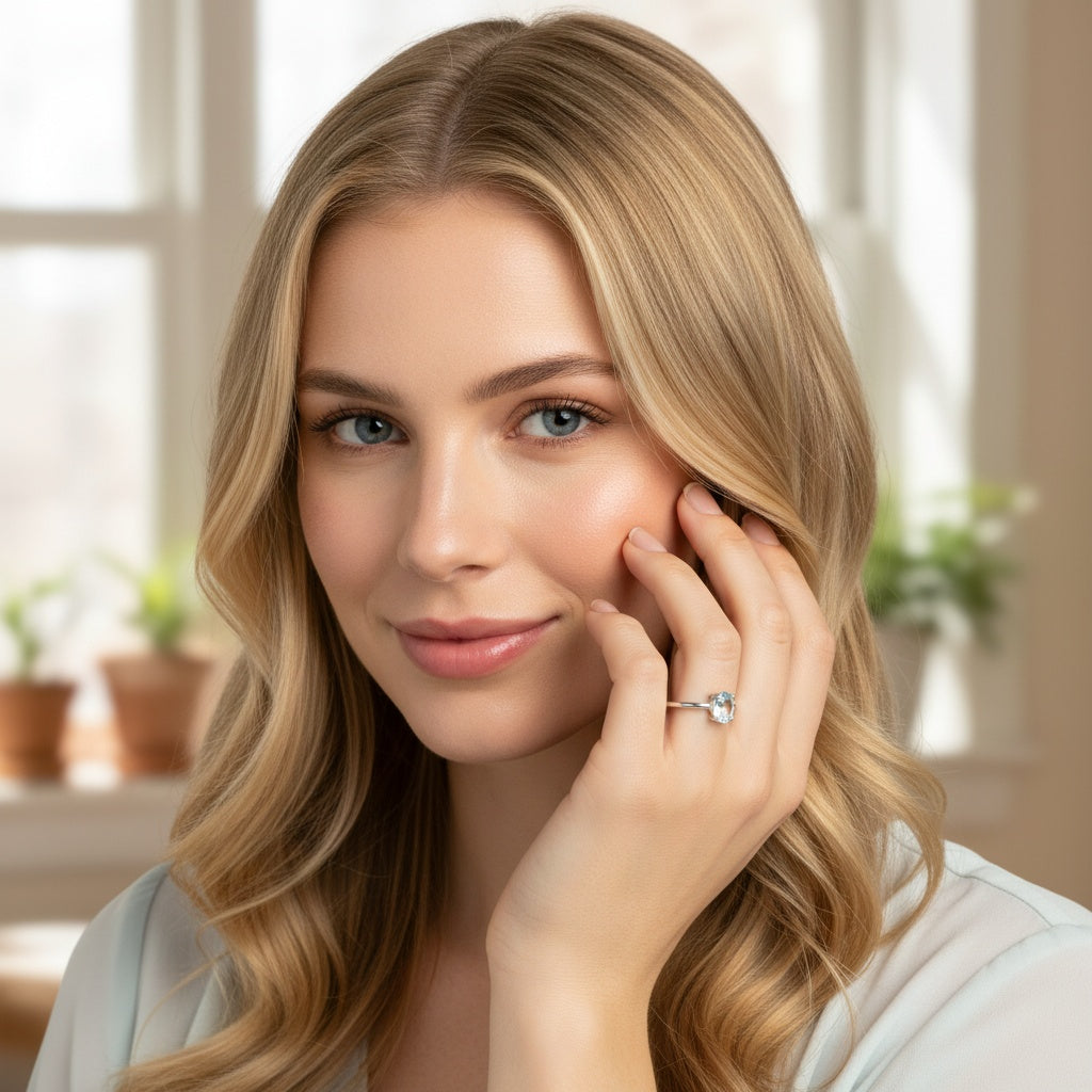 925 Sterling Silver Ring Oval 7x5mm Natural Blue Topaz Gemstone Fine Cut Women Bridal Jewelry Gift for Her, Sister