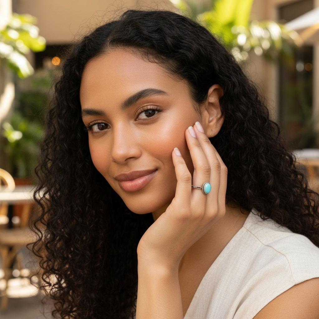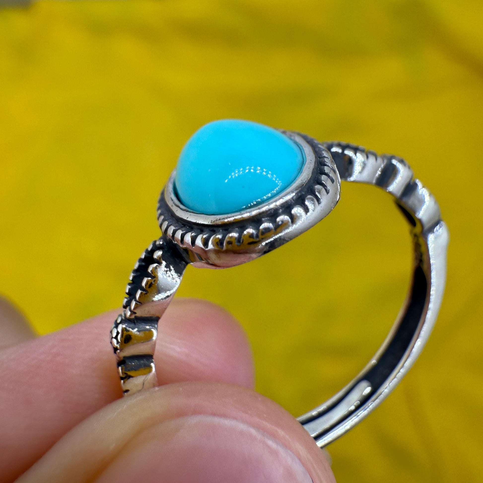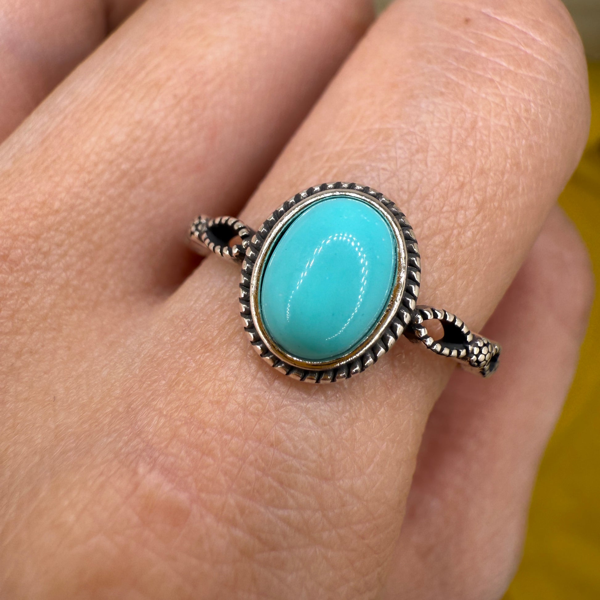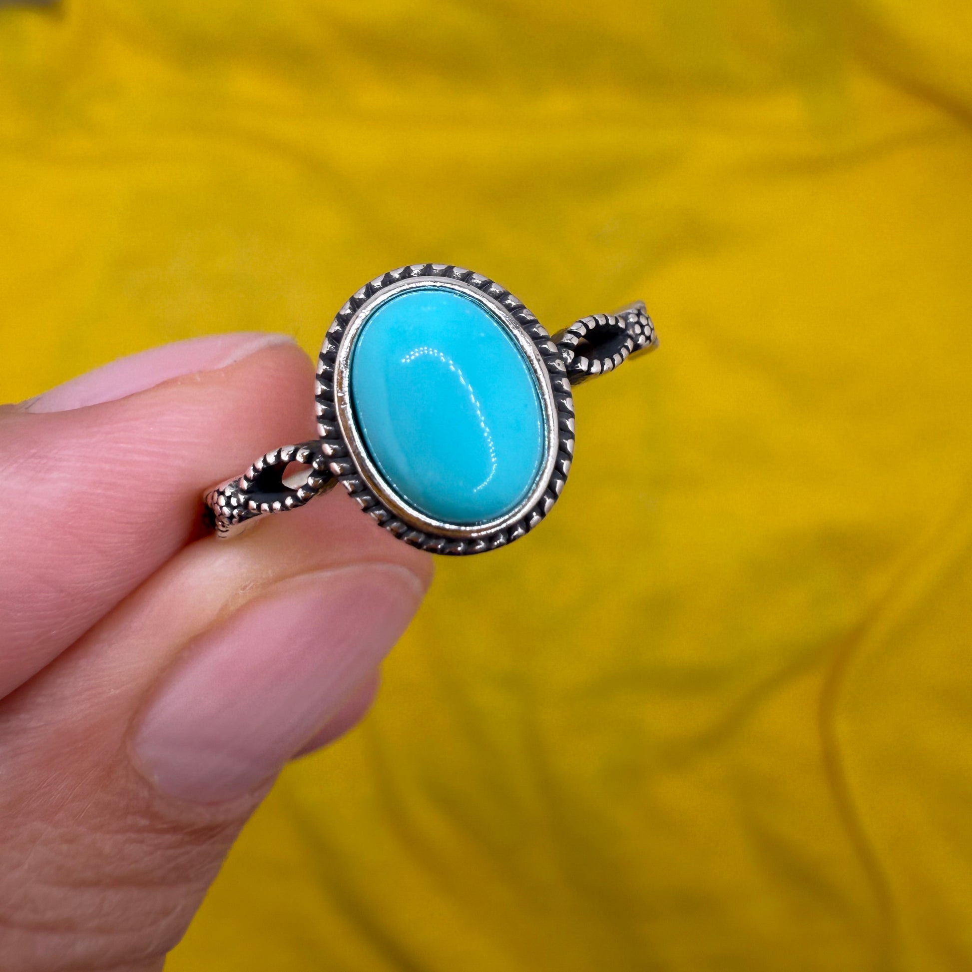 925 Sterling Silver Ring Oval 8x6mm Blue Natural Turquoise Gemstone Boho Women Cute Jewelry Gift for Her, Sister